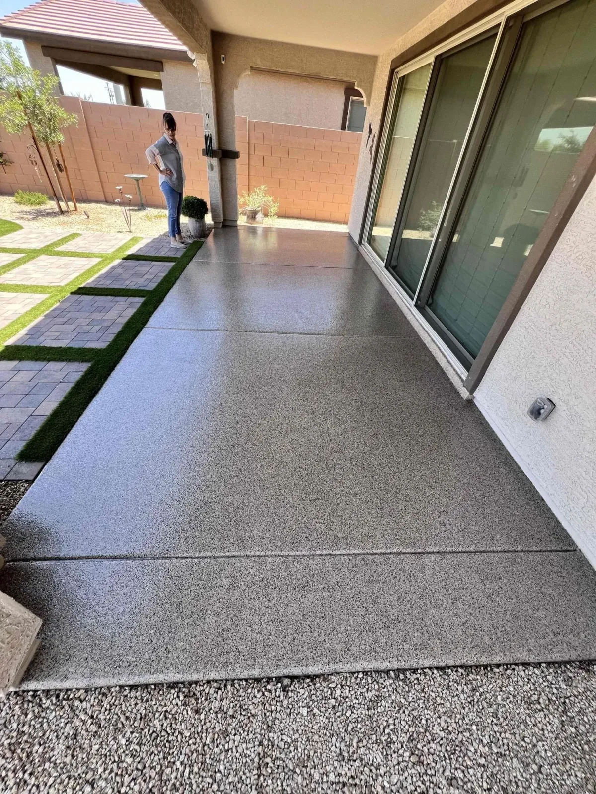 Fast efficient, clean about it..and looks so good, they patched and sanded off the old surface , very happy done in three hours , polyaspartic coating on our patio/ driveway you can tell they were very experienced..
